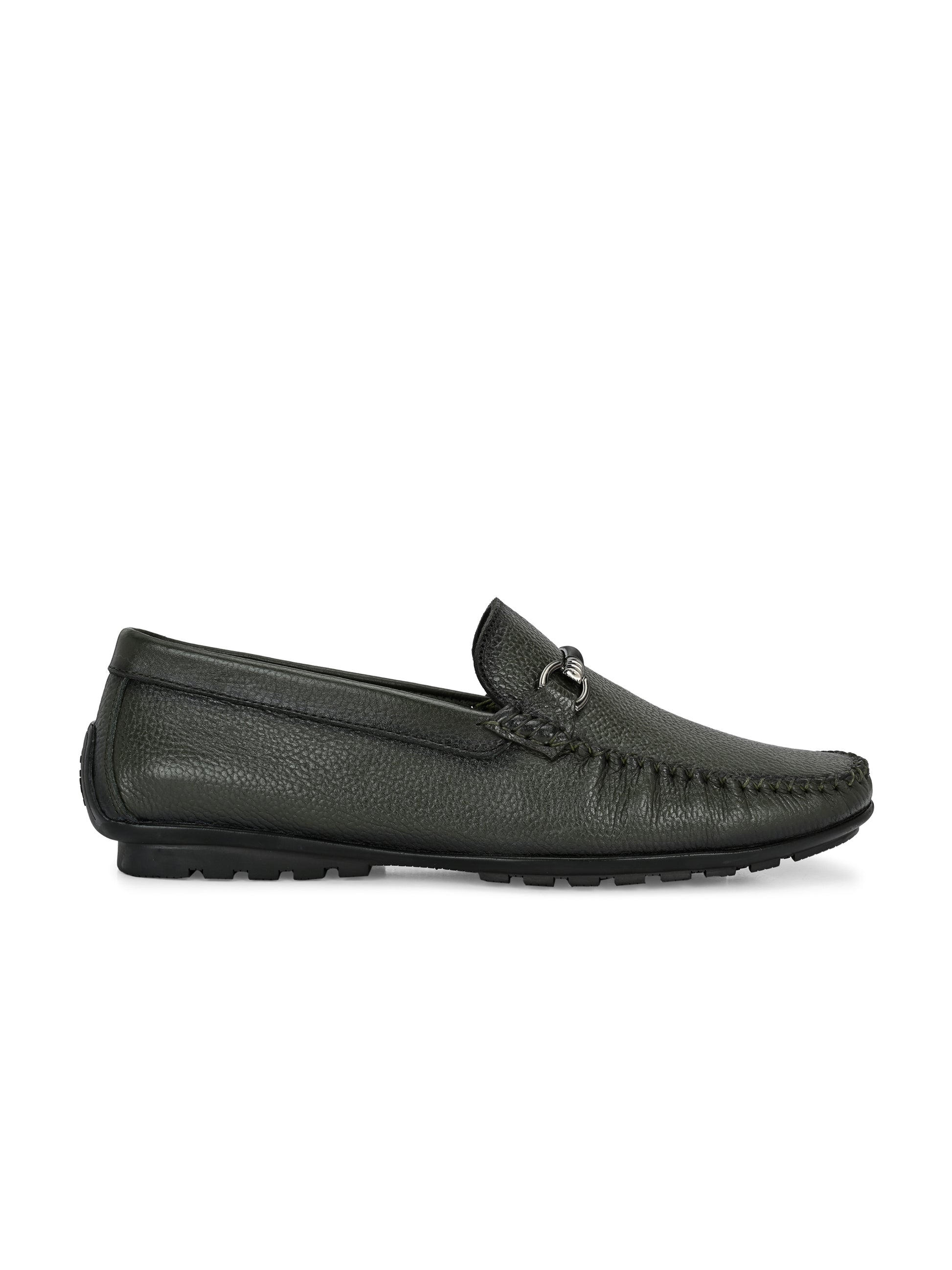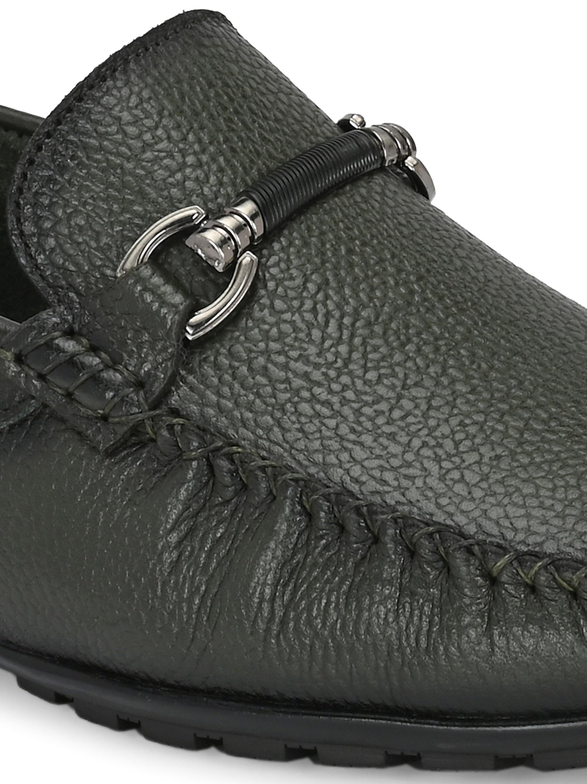 Step into distinctive elegance with our Premium Green Leather Loafers for Men — a bold fusion of contemporary style and timeless craftsmanship. Made from supple, textured genuine leather, these loafers feature a rich green tone complemented by a sleek metal horse-bit detail that adds a touch of modern sophistication.